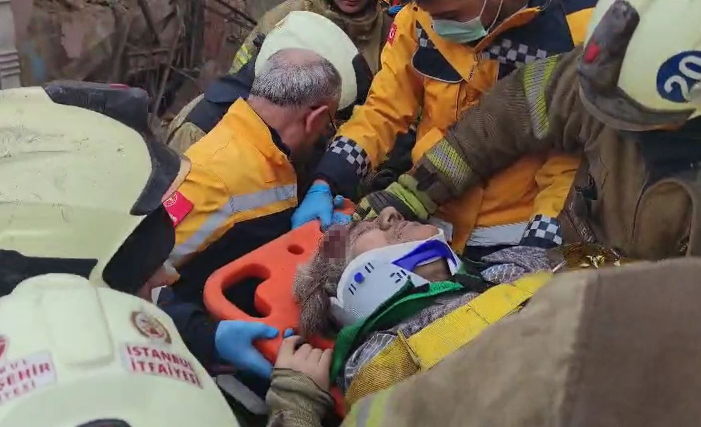 Fatih’te çöken binada enkaz altında kalanların kurtarılma anı saniye saniye itfaiye kamerasına yansıdı.