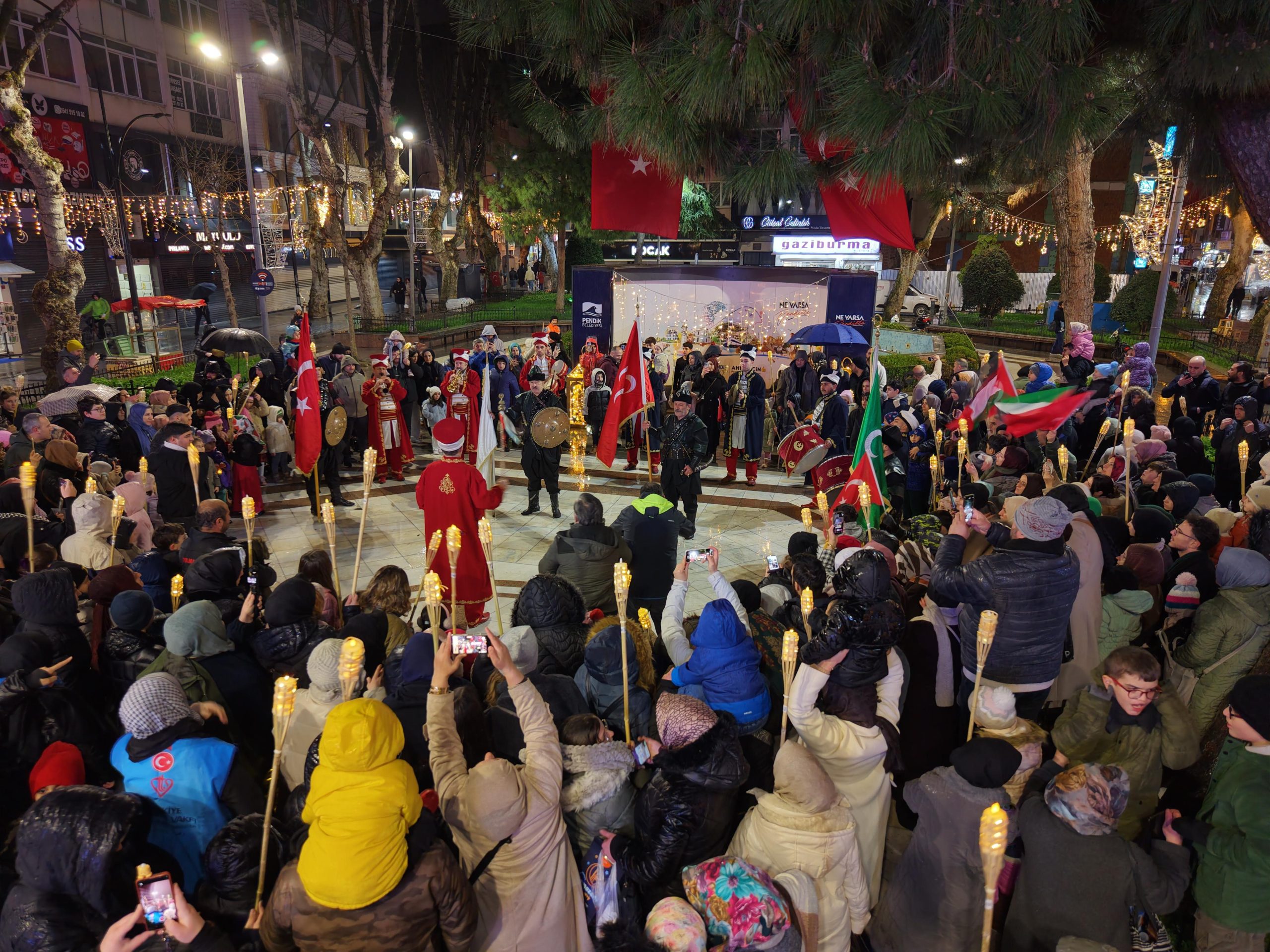 Pendik Belediyesi, 2026 Ramazan Etkinlikleri kapsamında “Çocuklarla Ramazan’ı Karşılama Şenliği” programı gerçekleştirdi. Program kapsamında Mehter Takımı eşliğinde fener alayı yürüyüşü düzenlendi. Pendik Müftülüğü iş birliğiyle düzenlenen program Pendik Sahil Meydanı’nda başladı. Programa katılan çocuklar, aileleri ve vatandaşlar, Mehter Takımı’nın icra ettiği marşlar eşliğinde fener alayı yürüyüşüne katıldı. Yürüyüş, Sahil Meydanı’ndan Gazi Paşa Caddesi üzerinden Pendik Çarşı Camii’ne kadar sürdü. Program, yürüyüşün ardından Pendik Çarşı Camii önünde sona erdi. Etkinlikte yer alan çocuklara, Pendik Belediyesi tarafından çeşitli hediyeler verildi. Öte yandan fener alayı yürüyüşü havadan görüntülendi.
